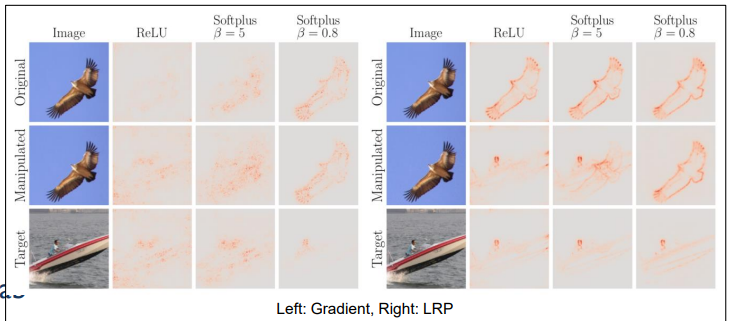 → 즉, 많은 설명 방법들이 gradient와 연산된 값을 사용하는데 decision boundary가 불연속적으로 나오게 된다면 gradient의 방향이 급격하게 변할 수 있어 조금만 입력이 바뀌어도 gradient는 아주 많이 바뀔 수 있다는 말임