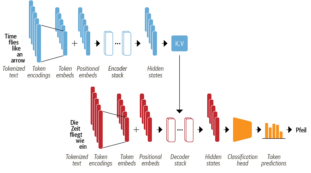 인코딩된 각 토큰은 임베딩 행렬을 통해 고차원 벡터로 변환되고, 해당 행렬은 Encoder stack과 Decoder stack의 입력으로 들어가게 된다.